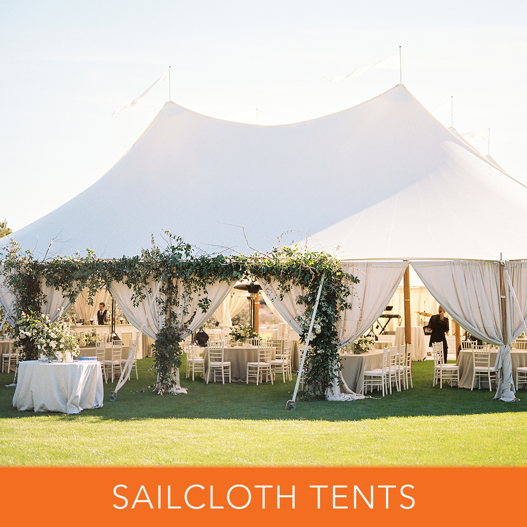 Sailcloth Tents — Elegant, translucent canopies that glow beautifully at night — a wedding favorite